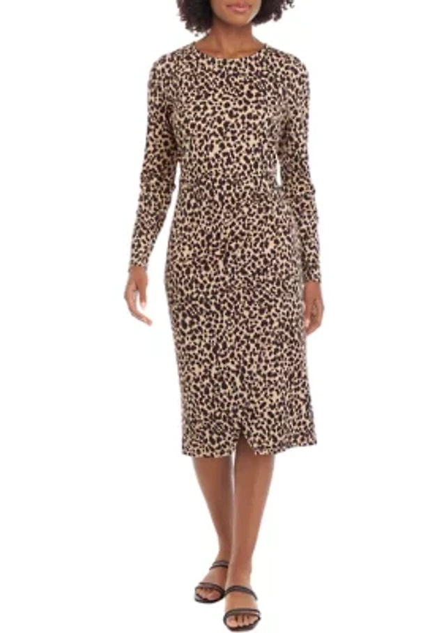 Women's Long Sleeve Faux Wrap Midi Dress