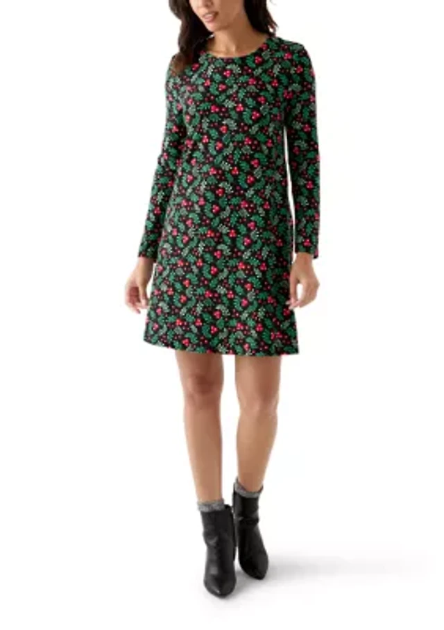 Toddler Girls Long Sleeve Smocked Holly Print Dress