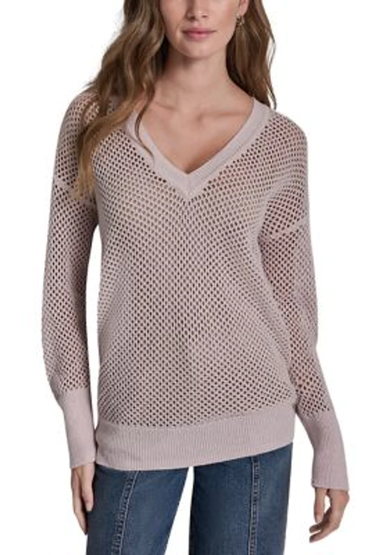 Women's Long Sleeve V-Neck Open Stitch Sweater