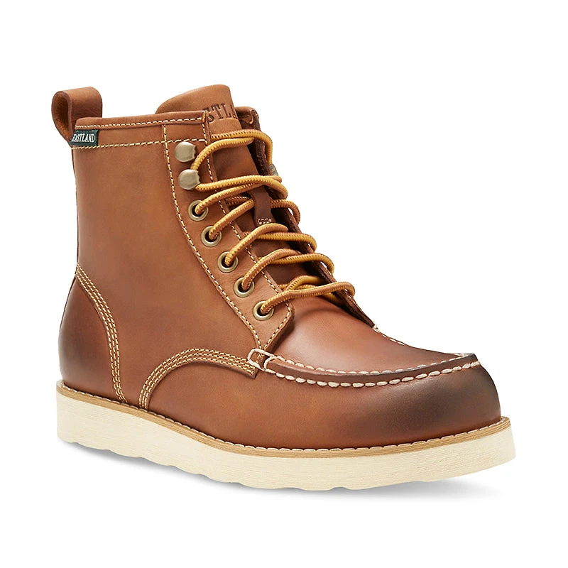 Women's Eastland Lumber Up - Peanut Leather Fit Comment: Most customers prefer ordering this style a half to full size smaller for the best fit. For example, if you normally purchase a size 8, we recommend purchasing a size 7 (to wear with light or midweight socks) or size 7 1/2 (to wear with heavyweight socks). DETAILS: Our handcrafted classic Lumber Up moc toe boot is packed with authentic character for a casual look and broken-in feel, right out of the box Triple reinforced stitching in heavy wear areas and welt detailing for extended durability Mini-groove sole design provides flexibility and all-day comfort Reinforced, two-tone taslan laces for easy on and off Easy to care for smooth leather upper Fully lined, cushioned footbed and supportive shank reduces foot and leg fatigue Durable, super-lightweight Rubber/EVA combo outsole Heel Height: 1"