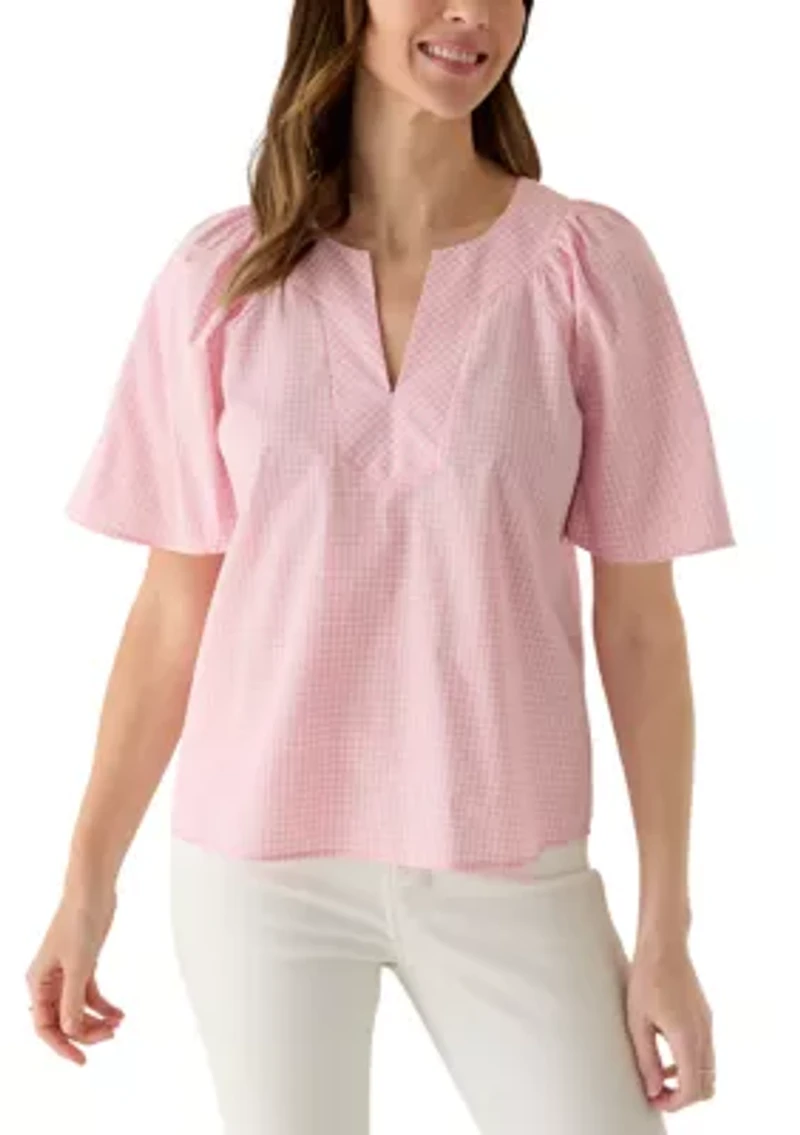 This Pine Proper top is perfect for any occasion, featuring charming puff sleeves and stylish stripes for a chic look all day long. Pullover Split neck Elbow puff sleeves Imported Product Specifications 24" L Material & Care Cotton Machine washable