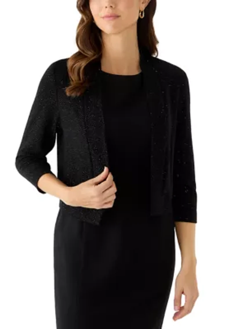 This Perceptions open front cardigan features three-quarter sleeves for a versatile, layered look. Open front Three-quarter sleeves Unlined Imported Product Specifications 19" L Material & Care Nylon, spandex Hand wash