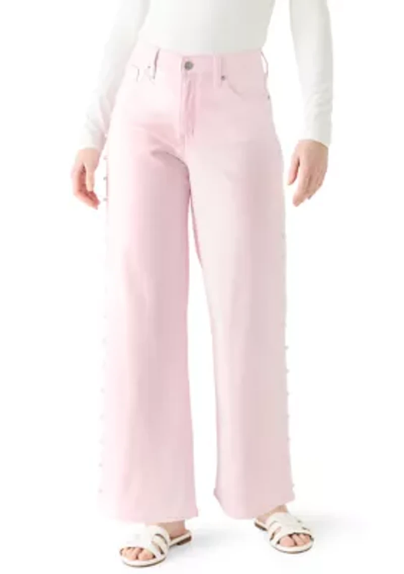 Women's Pearl Trim Cropped Wide Leg Jeans