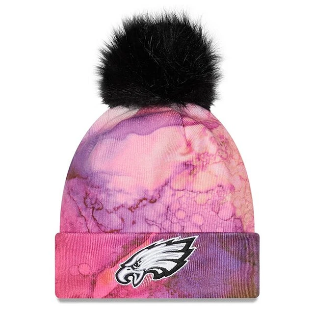 Women's Philadelphia Eagles New Era Pink Black 2022 NFL Crucial Catch Pom Knit Hat