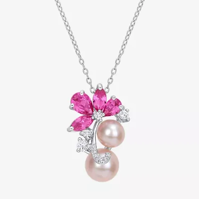 Womens Pink Cultured Freshwater Pearl Sterling Silver Flower 18 Inch Pendant Necklace