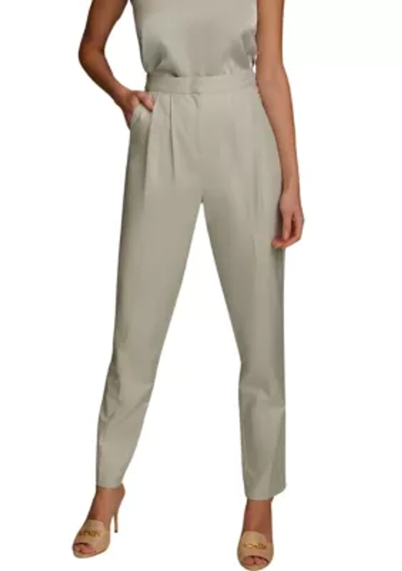 Updated with pleated details, these mid-rise pants from Donna Karan are an essential choice for formal events. Hook and bar closure, zip closure 2 side seam pockets, 2 back patch pockets Trouser fit Imported Product Specifications 30" Inseam Material & Care Cotton, rayon Machine washable