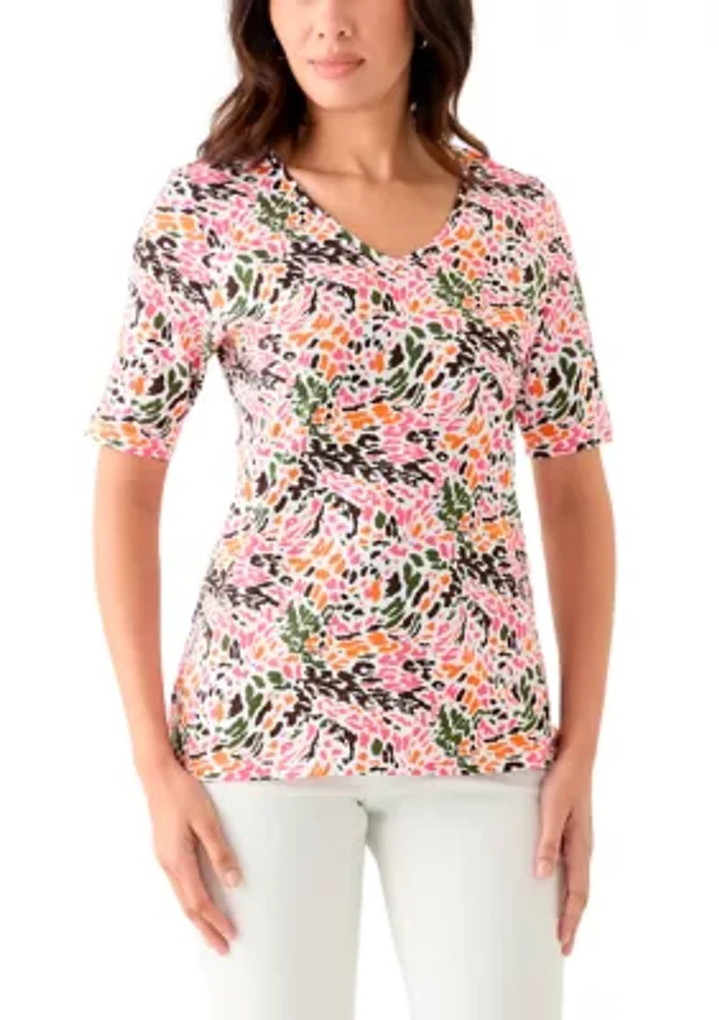 Lively prints and a flattering V-neckline add a touch of romantic appeal to this lovely short-sleeve top from Kim Rogers®. Pullover V-neck Short sleeves Imported Belk Exclusive Product Specifications 26.5" L Material & Care 100% Cotton Machine washable