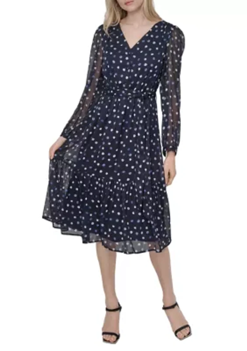 Women's Promo Long Sleeve Printed Chiffon A-Line Dress