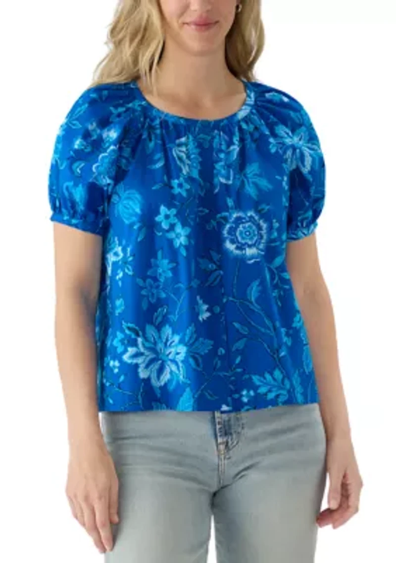 This Philosophy blouse is perfect for any occasion, featuring charming puff sleeves and a stylish floral print for a chic look all day long. Button closure Crew neck Short puff sleeves Imported Product Specifications 22.75" L Material & Care 100% cotton Machine washable