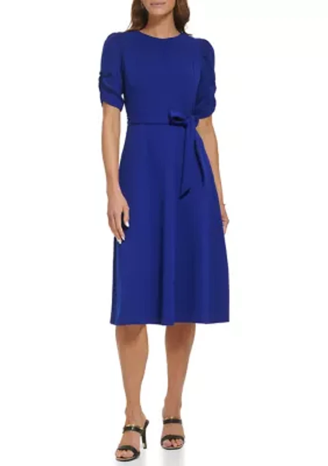 Women's Short Sleeve Tie Waist Midi Dress