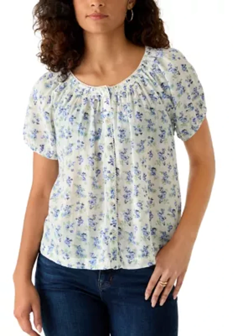 This Lucky Brand top is perfect for any occasion, featuring charming raglan sleeves and a stylish print for a chic look all day long. Button closure Scoop neck Short puff sleeves Imported Product Specifications 22.5" L Material & Care Cotton Machine washable