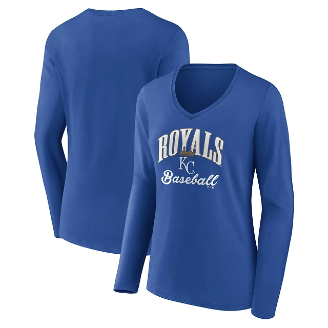 Women's Royal Kansas City Royals Victory Script Long Sleeve V-Neck T-Shirt