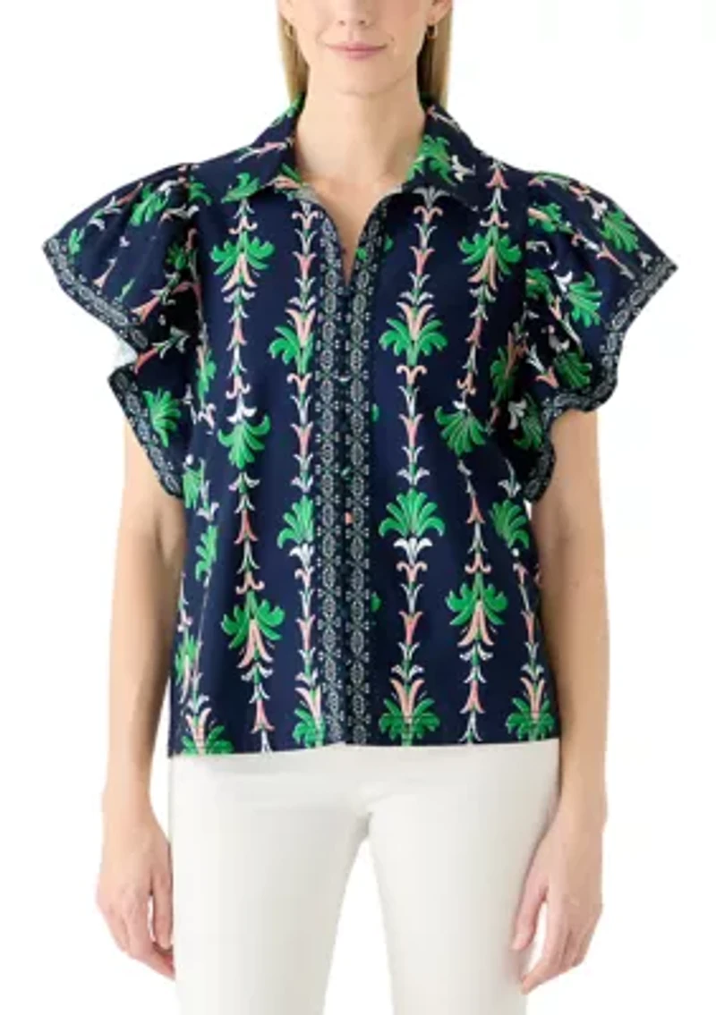Women's Short Flutter Sleeve Poplin Top