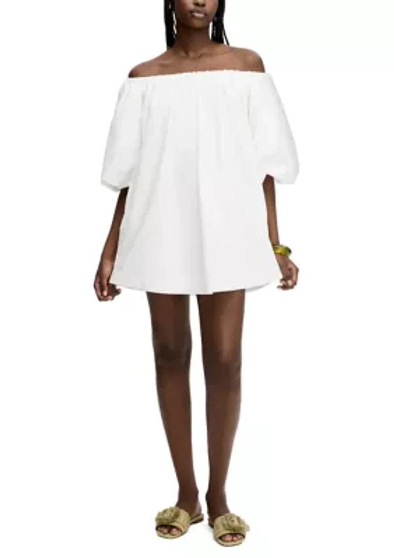 This lovely Sam Edelman bubble dress, with its charming puff sleeves and mini-length, offers a chic look that's perfect for all-day wear. Pullover Off the shoulder neckline 3/4 puff sleeves Imported Product Specifications 28" L Material & Care 100% cotton Machine washable