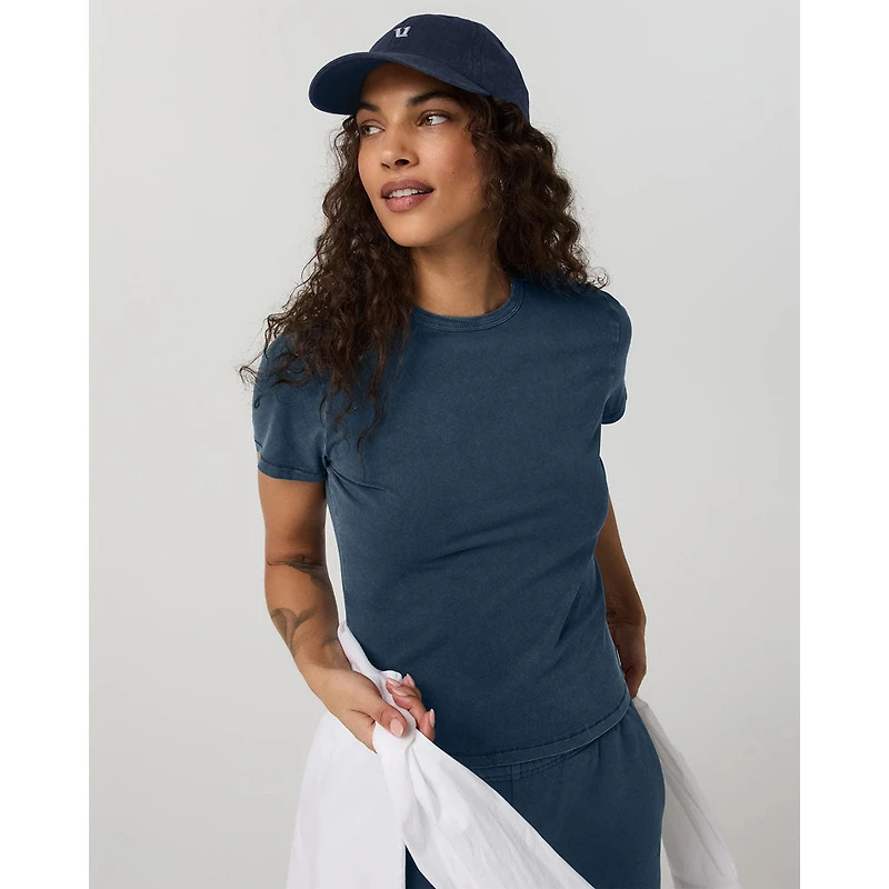 Our women's Short Sleeve Feather Classic Garment Dye Tee is your new go-to for all-day comfort when you’re lounging, jetting off on vacation, or running around town. Made in a floaty, featherlight stretch knit with a garment dye finish, you’ll reach for this easy cotton top on repeat.