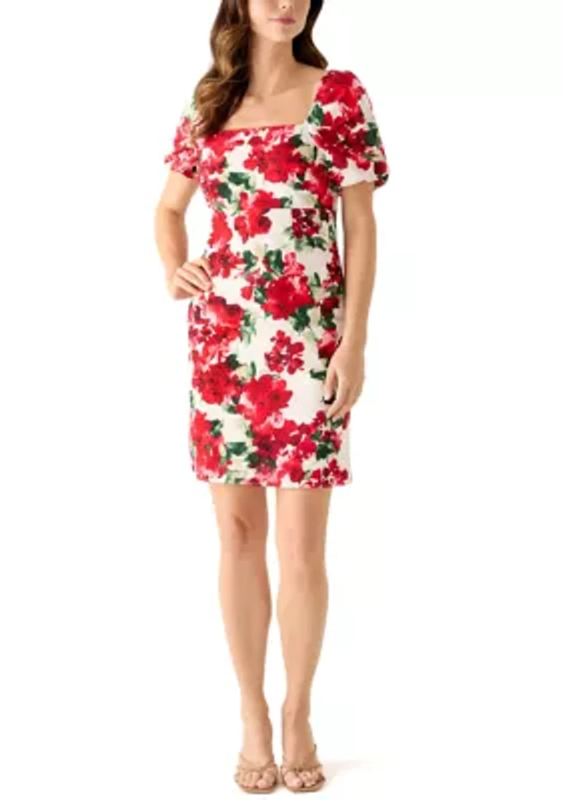 This lovely Julia Jordan mini dress, with its charming puff sleeves and beautiful print, offers a chic look that's perfect for all-day wear. Zip closure Square neck Short puff sleeves Lined Imported Product Specifications 36.5" L Material & Care 100% cotton Machine washable