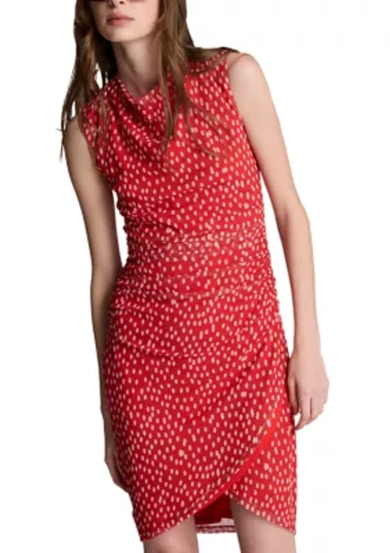 This lovely Kenneth Cole dress, with its charming wrap style and beautiful print, offers a chic look that's perfect for all-day wear. Pullover Asymmetrical Sleeveless Lined Imported Product Specifications 33" L Material & Care Polyester, polyester blend Dry clean only
