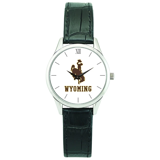 Women's Silver Wyoming Cowboys Stainless Steel Watch with Leather Band