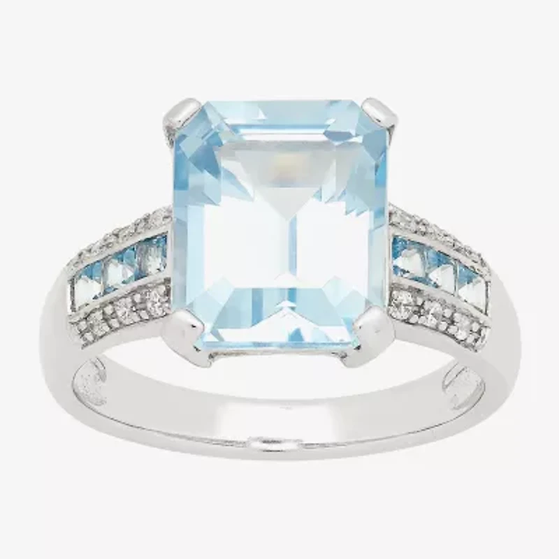 Womens Simulated Blue Aquamarine Sterling Silver Cocktail Ring