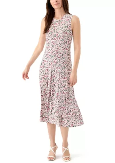 Women's Sleeveless Crew Neck Ditsy Floral Dress