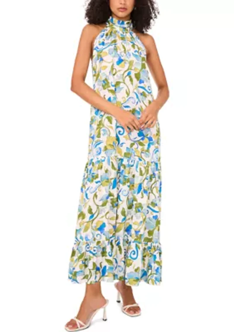 Women's Sleeveless Halter Neck Floral Print Maxi Dress