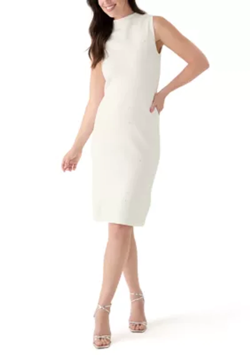 Women's Sleeveless Mock Neck Heat Set Stud Dress