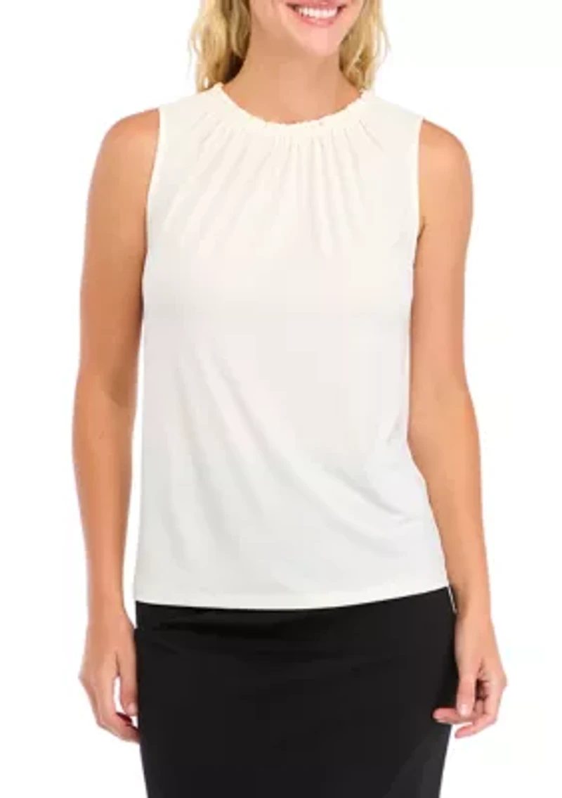 A cinched mock neckline adds chic appeal to this sleeveless THE LIMITED top. Pullover Crew neck Sleeveless Unlined Imported Belk Exclusive Product Specifications 23.88" L Material & Care Polyester Machine washable