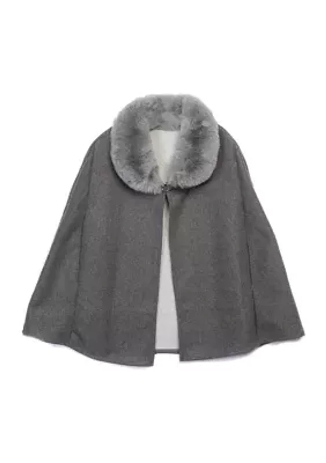 Azalea Wang Shearling Faux Fur Collared Long Poncho