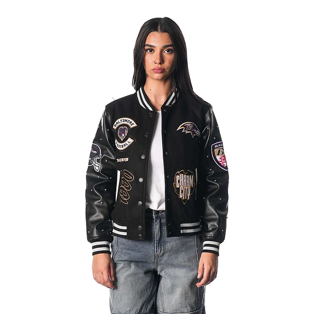 Women's The Wild Collective Black Baltimore Ravens Varsity Full-Snap Sparkle Jacket