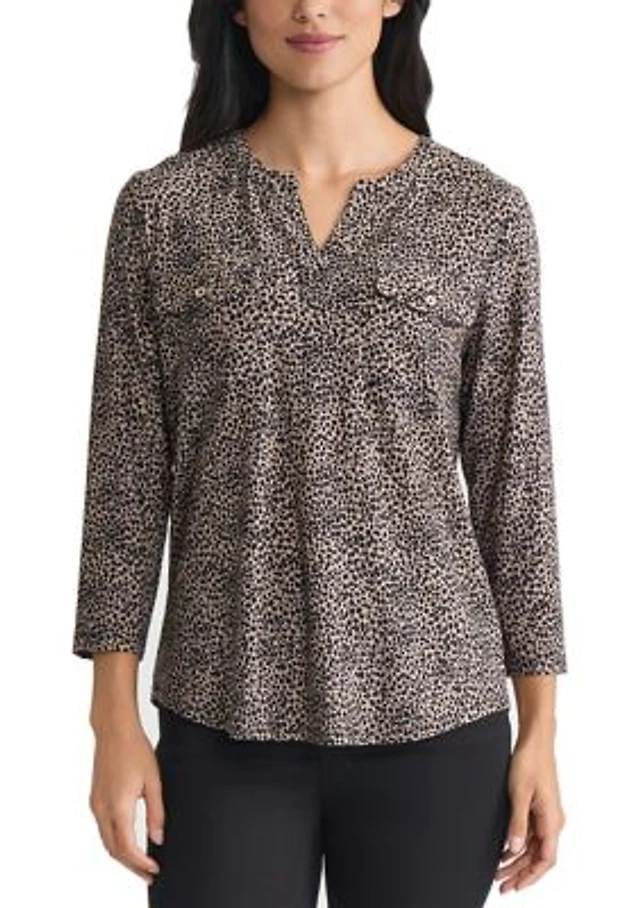 Women's Three-Quarter Sleeve Crew Neck Printed Top