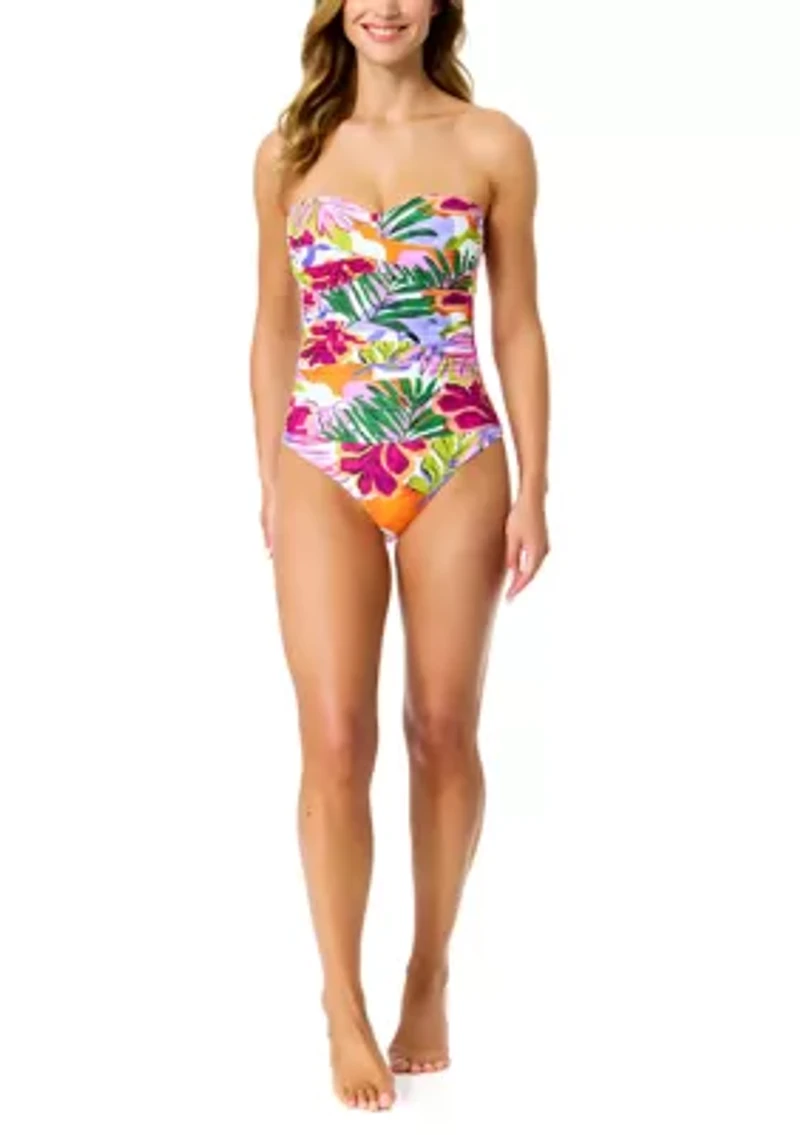 Enjoy a chic and stylish look with this charming bandeau one-piece swimsuit from Anne Cole®. Designed for both comfort and simplicity, its twist front detail adds a lovely dimension to the silhouette, making it perfect whether relaxing poolside or soaking up the sun at the beach. Lined Adjustable straps Imported Material & Care Nylon, spandex Hand wash
