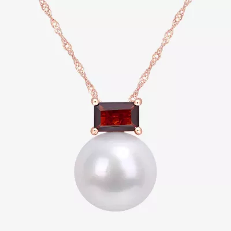 Womens White Cultured Freshwater Pearl 10K Rose Gold 17 Inch Pendant Necklace