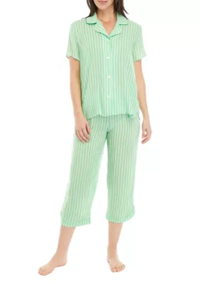Katie Kime Garden Stripe Woven Short Sleeve Notch Collar Long Pajama Set