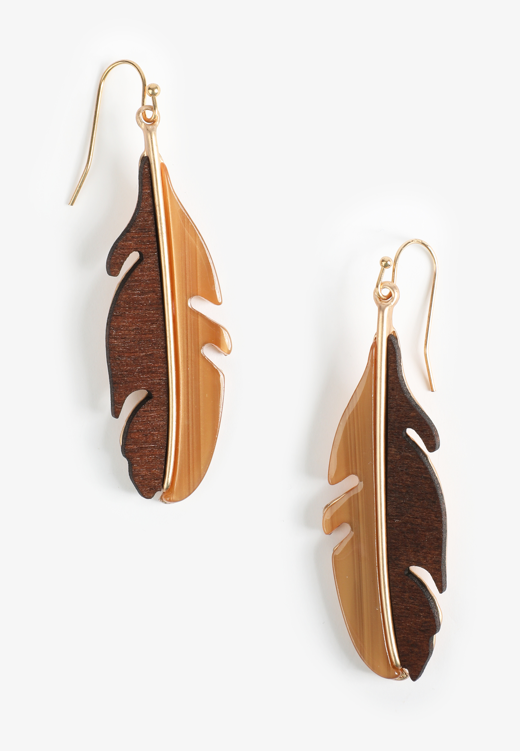 Wood Resin Feather Drop Earrings