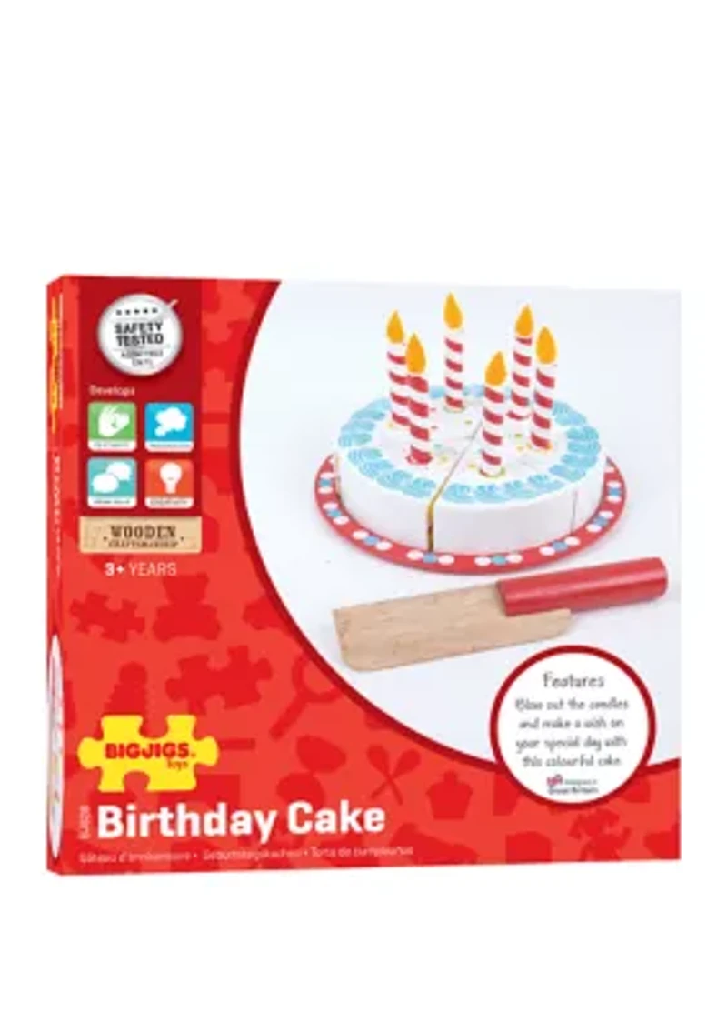 Blow out the candles and make a wish on your special day! Feast your eyes on this delicious looking colorful Wooden Birthday Cake that looks good enough to eat and is perfect for any party. Supplied complete with a wooden serving slicer, this wooden cake is big enough to treat six little friends on a special occasion or as an after tea treat. It's a great way for youngsters to learn about sharing and for parents and children to enjoy interactive play sessions. Recommended for 1 player, ages 3 and up. Made in Indonesia. Package Dimensions: 7.375 in x 7.125 in x 2.5 in 14 pieces Includes 1 Wooden Cake Tray, 6 Wooden Cake Slices, 6 Wooden Candles, 1 Wooden Cutting Knife. WARNING: CHOKING HAZARD-Small parts. Not for children under 3 years of age. Imported Material & Care Plastic Wipe clean with dry or damp cloth