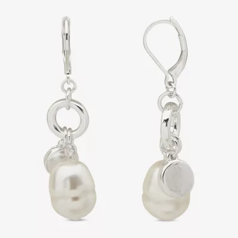 Worthington Silver Tone Simulated Pearl Womens Drop Earrings