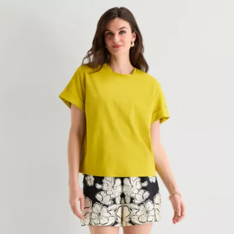 Worthington Womens Crew Neck Short Sleeve T-Shirt