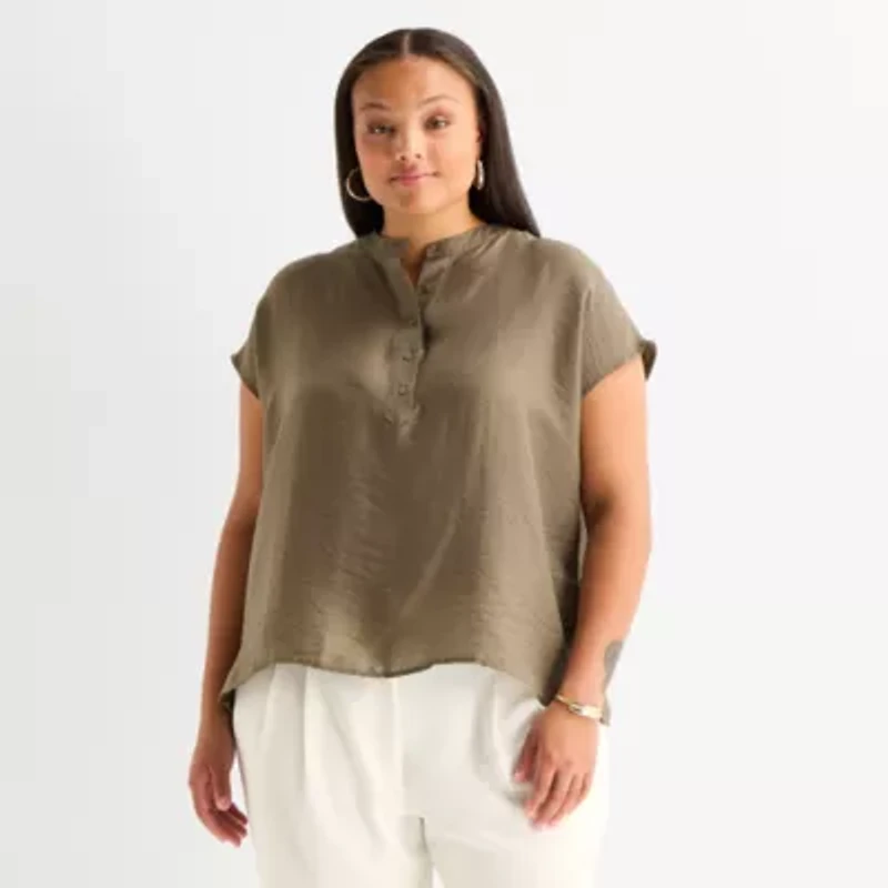 Worthington Womens Plus Henley Neck Short Sleeve BlouseWorthington Womens Plus Henley Neck Short Sleeve BlouseWorthington Womens Plus Henley Neck Short Sleeve Blouse