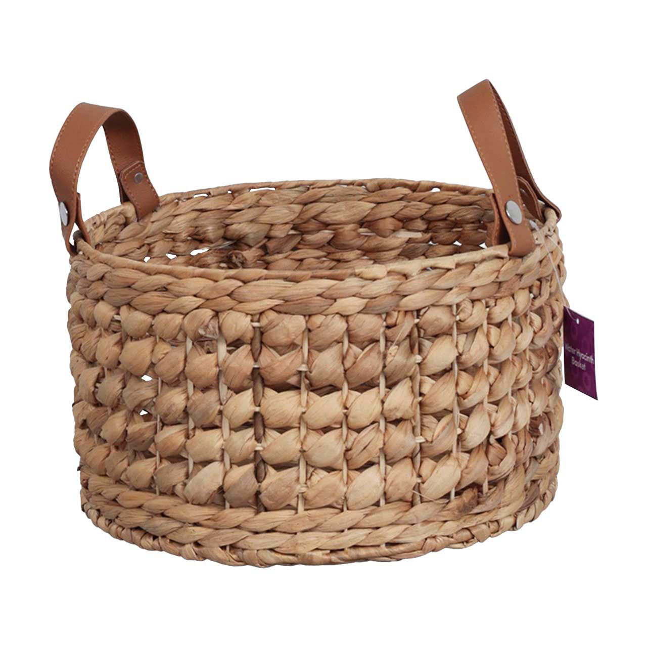 Organize your space with a touch of natural elegance using our Woven Water Hyacinth Round Storage Basket with Handles. This charming small basket, crafted from eco-friendly water hyacinth, is a perfect blend of functionality and rustic style, making it a beautiful addition to any room in your home. Measuring just the right size for a variety of uses, this round storage basket is ideal for storing small household items such as keys, remote controls, toiletries, craft supplies, or even as an attractive plant holder. Its tightly woven construction ensures durability and longevity, while the open weave design adds texture and visual interest. The basket features sturdy faux leather handles securely fastened with metal rivets, allowing for easy portability. Whether you're using it to tidy up your living room, organize your bathroom essentials, or add a decorative touch to your bedroom, these handles make it easy to carry and reposition the basket wherever you need it. The natural color of the water hyacinth fibers brings a warm, earthy tone to your decor, seamlessly blending with a variety of interior styles, from coastal to bohemian to farmhouse. Its compact size makes it versatile enough to fit on shelves, countertops, or tables without overwhelming your space. Elevate your home organization with the Woven Water Hyacinth Round Storage Basket with Handles, Small from pOpshelf. It's a stylish, practical solution for keeping your space neat and tidy while adding a natural touch to your decor.