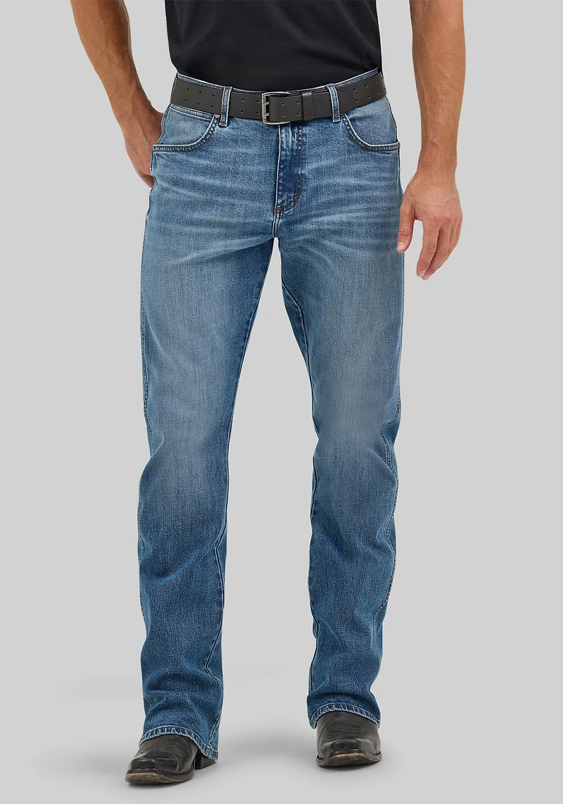Designed for everyday comfort with a laid‑back Western feel, these jeans feature a Relaxed Fit through the hip and thigh for easy movement. A mid-rise provides a natural, comfortable sit at the waist, while the relaxed leg opening fits smoothly over boots for versatile styling both on and off the job. Classic five‑pocket construction and a zip fly keep the look timeless, while a worn leather patch with Wrangler's rope logo adds a touch of lived‑in character. Durable and effortlessly wearable, these jeans pair just as easily with tees as they does with casual button‑downs.