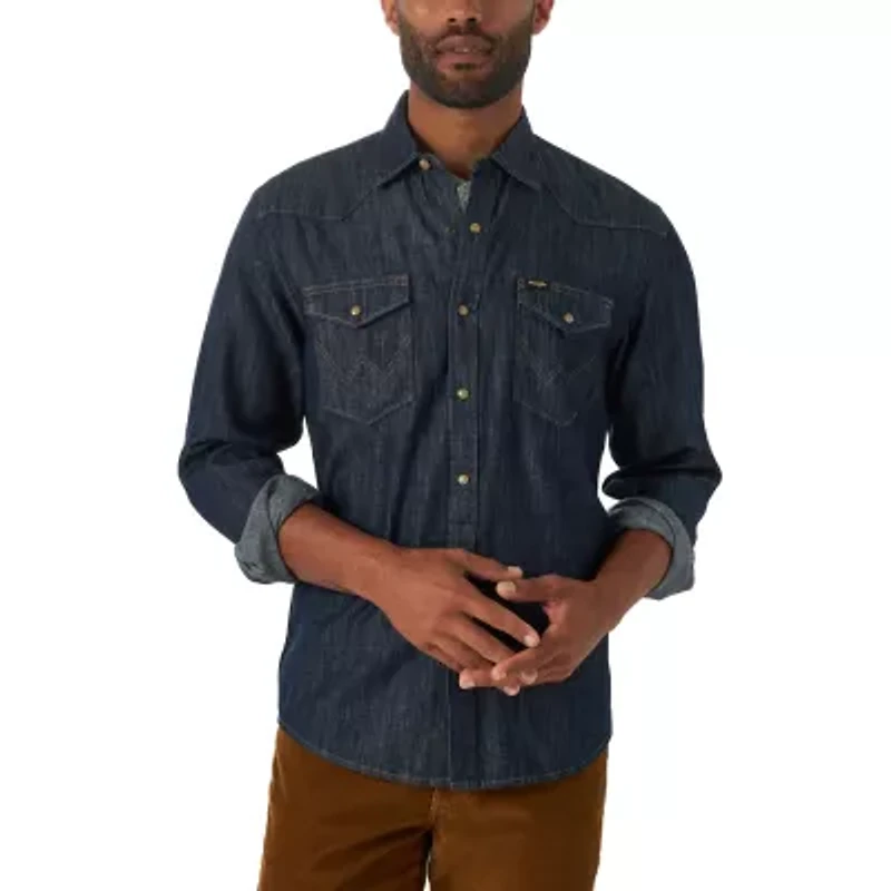 Wrangler® Mens Regular Fit Long Sleeve Button-Down Shirt