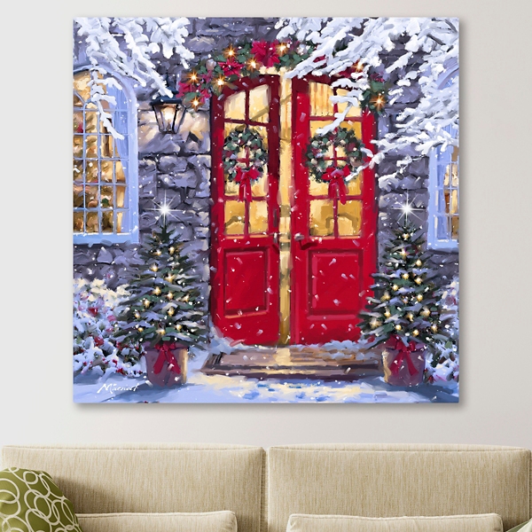 The classic look of this Wreaths on a Red Door Canvas Art Print will work with any style of Christmas decor. It is a great way to tie a room together this season! Art measures 40L x 1.25W x 40H in. Distinctively printed on stretched canvas Wrapped edges complete the look Features wreaths hanging on a front door Hues of red, blue, gray, black, green, yellow, and white Weight: 5.8 lbs. Comes ready for wall mount; no additional hanging hardware required Care: Dust with a soft, dry cloth. This item is available at Kirklands.com only, not available in stores. Please note: this item cannot be shipped to APO/FPO addresses.