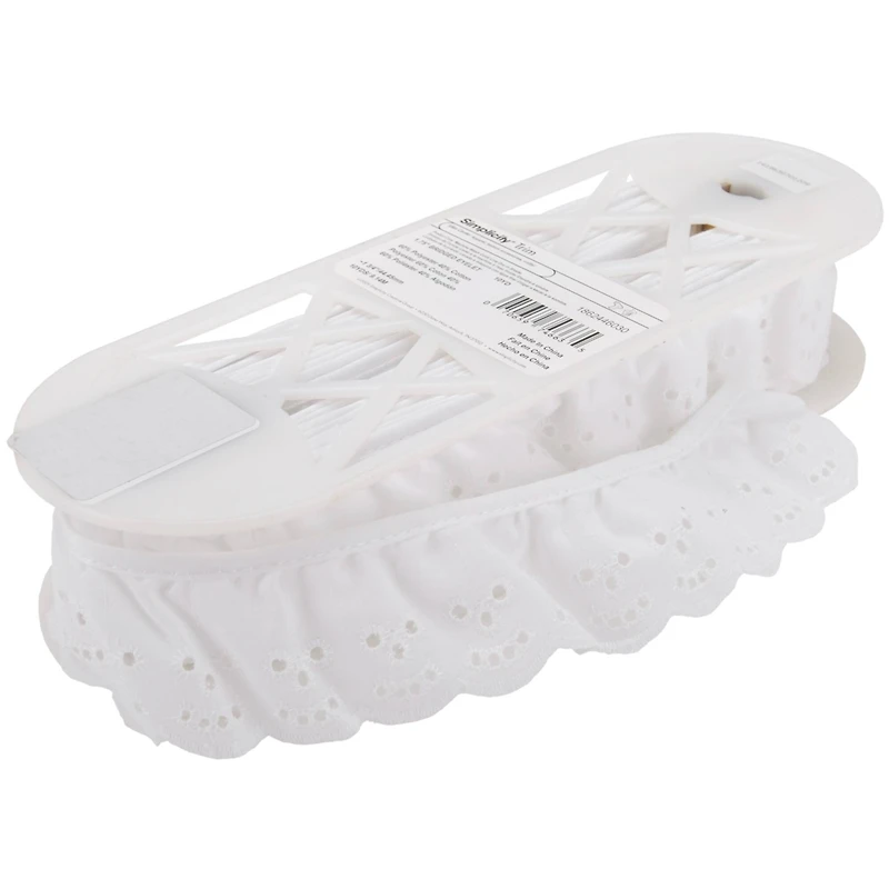 Care: machine wash cold, line dry out of direct sunlight.Color: WhiteContents: 60% polyester, 40% cottonWidth: 1.75"Maximum cut length: 10 yd.