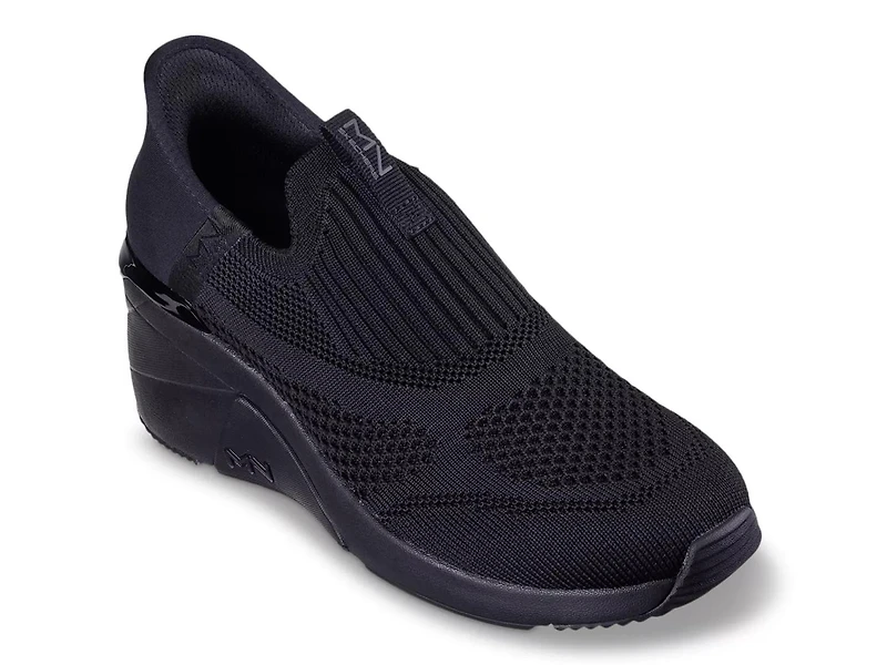 Sporty and trendy at the same time, you'll be obsessed with the style of the A Wedge slip-on sneaker by Mark Nason x Skechers. The engineered knit sneaker, detailed with a metallic heel trim, has a Memory Foam Lux insole for daylong cushioning. Exclusive Heel Pillow and Skechers Hands-Free Slip-Ins profile provide an effortless and secure fit.