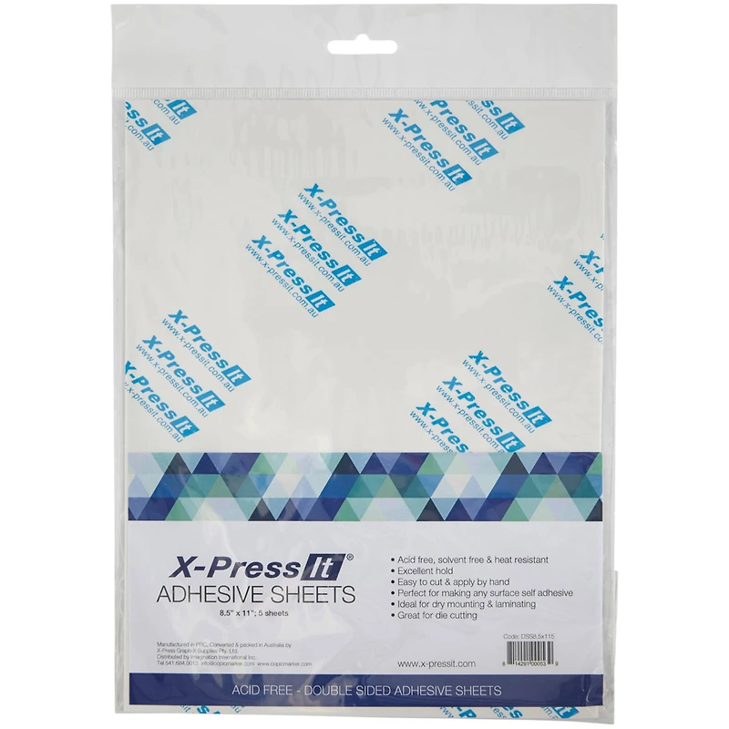 These double-sided, high tack adhesive sheets are good for mounting and laminating. They are perfect for making any surface self-adhesive. These sheets have excellent hold and are great for die-cutting.Details:8.5" x 11" each5 sheetsDouble sidedAcid and solvent freeHeat resistantIdeal for dry mounting and laminatingGreat for die-cutting