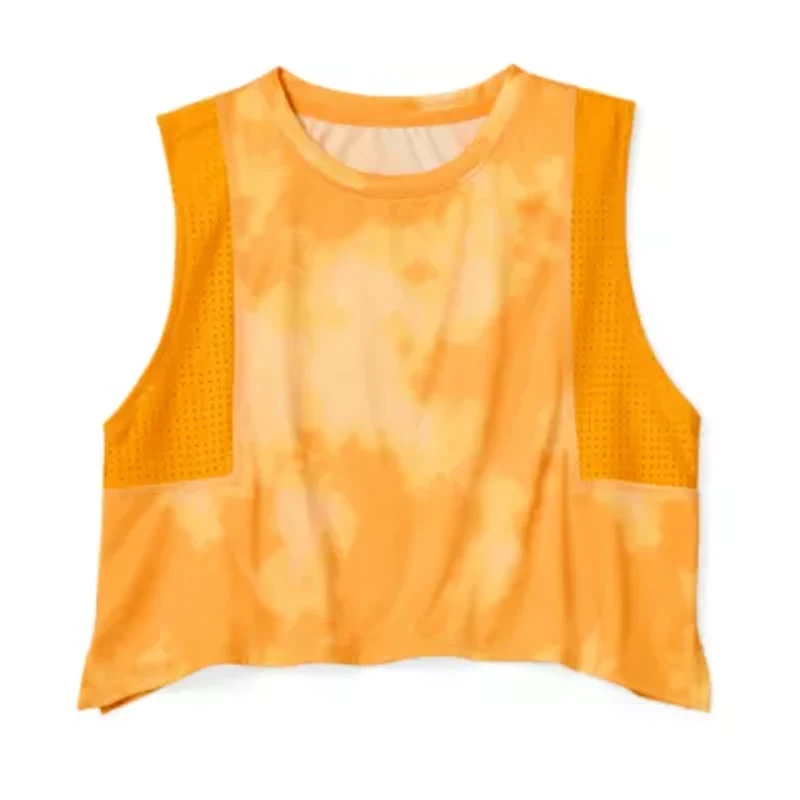 This Xersion cropped tank top for little and big girl's is a joyful piece she'll love wearing for sports and active days. It's made from a vibrant tie-dye jersey with side mesh panels for breathability and it has a crew neckline. Team it with leggings or bike shorts.