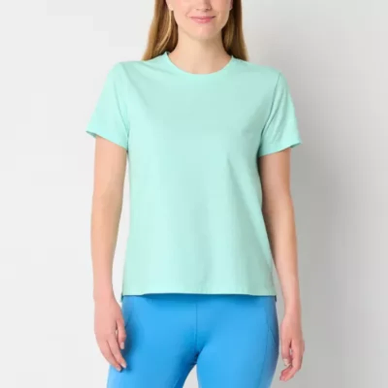 Deemed a Gotta-Have-It item for value you can count on every day! Be bright for your next workout in this Xersion women's short-sleeve t-shirt. Crafted from a soft recycled stretch-cotton jersey, this tee is cut for a loose-fit with a crew neckline. Style it with leggings or bike shorts.