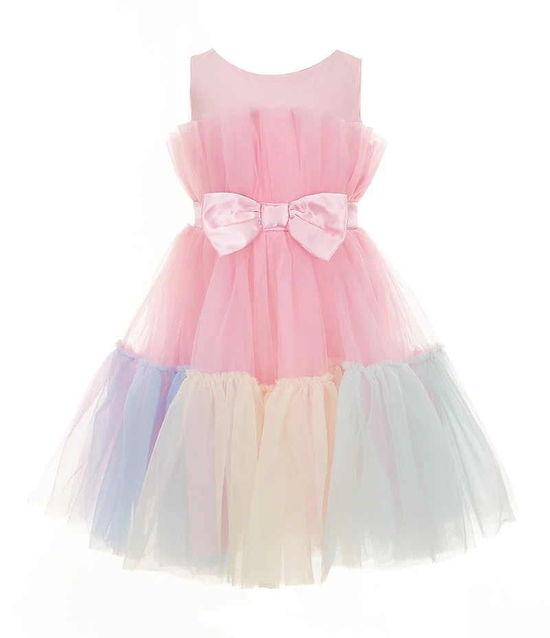 Xtraordinary Little Girls Rainbow Tulle Bow Front Cupcake Dress