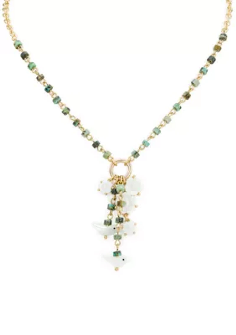 Embrace the beauty of nature with the delicate details of this charm dangle necklace from Patricia Nash. Featuring mother of pearl flowes and bird charms on layered chains, this piece captures eyes and hearts with ease. Lobster closure Satin finish Imported Product Specifications 18" L + 3" extender Material & Care Gold-tone metal Wipe clean