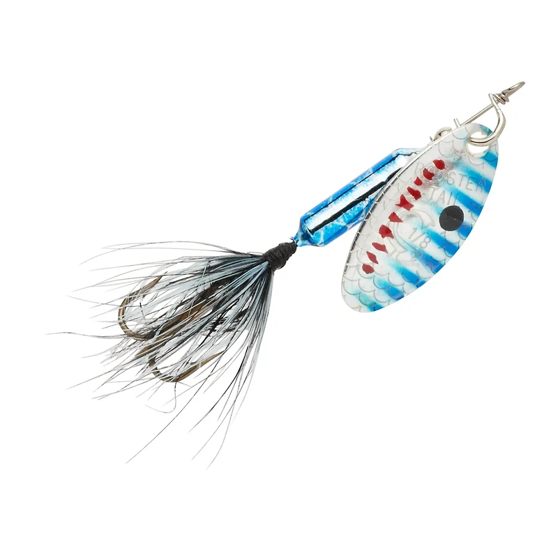 Reel in a ton of gamefish with help from the Yakima Rooster Tail 1/8 oz. Spinnerbait. This bait features a colorful, pulsating hackle tail and a spinning blade to entice fish to strike. Treble hook.